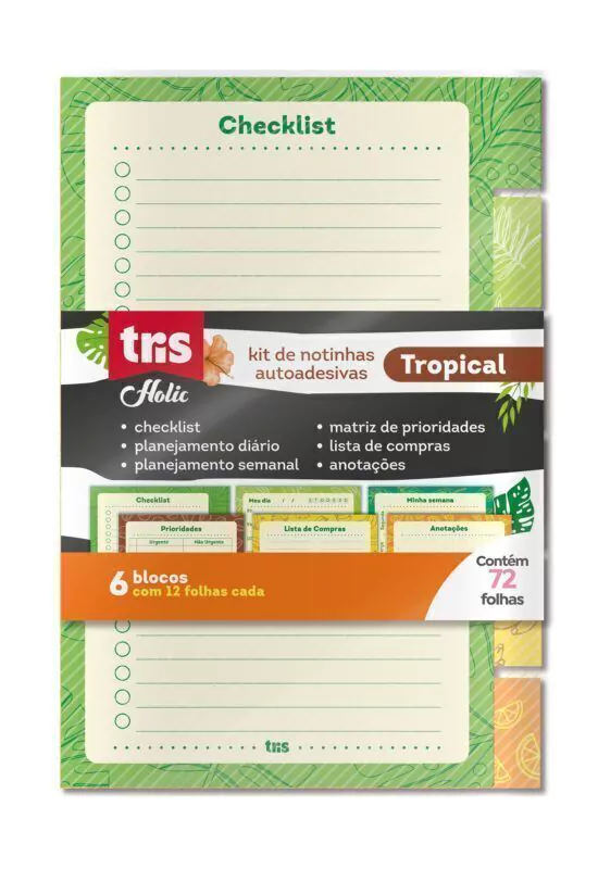 O bloco de notas autoadesivas Holic Tropical é perfeita para se organizar no dia a dia. Possui 6 blocos diferentes para você se organizar.