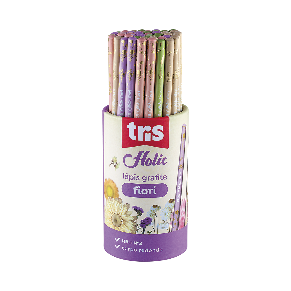 O mood Delicata explora cores claras e transpa rência, dedicado à delicadeza e à naturalidade das flores. O lápis grafi te Fiori possui corpo em degradê e estampa floral dourada!