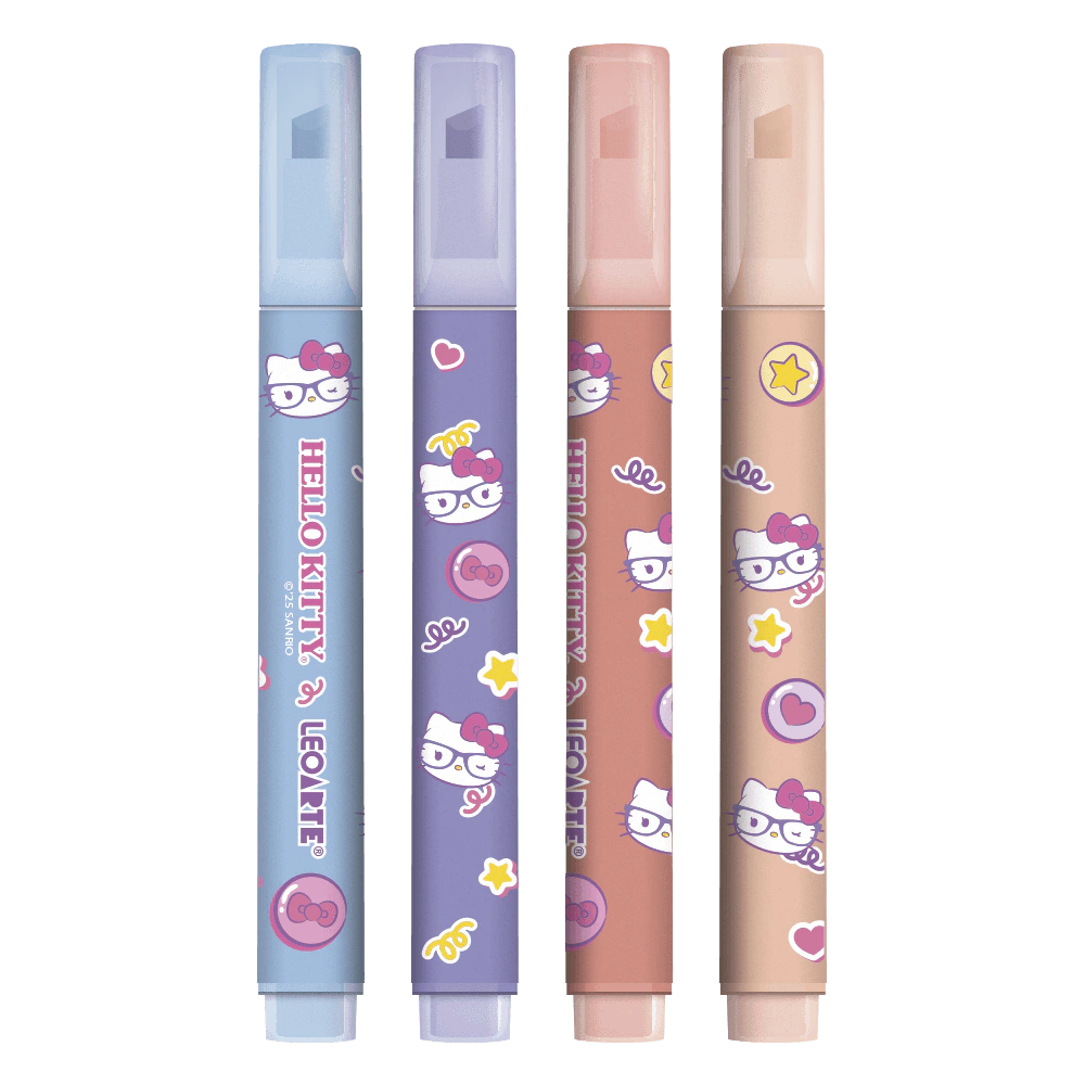 Imagine poder marcar textos, frases e palavras com as cores preferidas da Hello Kitty. Isso é possível com o Marca-Texto Hello Kitty Estojo com 4 Cores Leoarte.